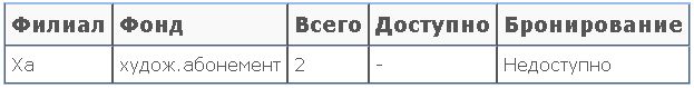 их доступности для выдачи, а также возможность бронирования.